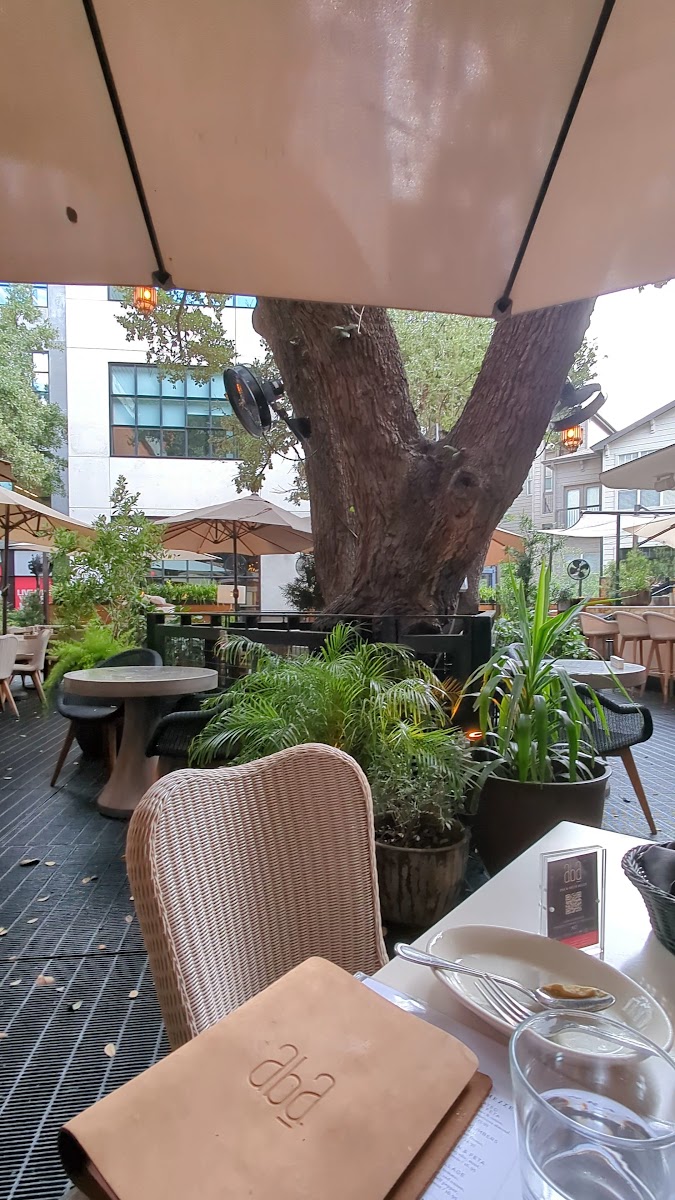 Aba is a beautiful restaurant with a modern and quaint vibe. There’s both indoor and outdoor seating, and we chose to sit outside. It was very cozy and the temperature was perfect. It was a great spot to relax and enjoy the evening. The service was very friendly and attentive. We only had drinks and dessert. The menu is somewhat pricey. The frozen yogurt was light and refreshing. The pistachio panna cotta was interesting both the panna cotta and the orange topping were good on their own, but together the combination didn’t quite work for me. Paid parking was difficult to find but this was a lovely spot with great ambiance.